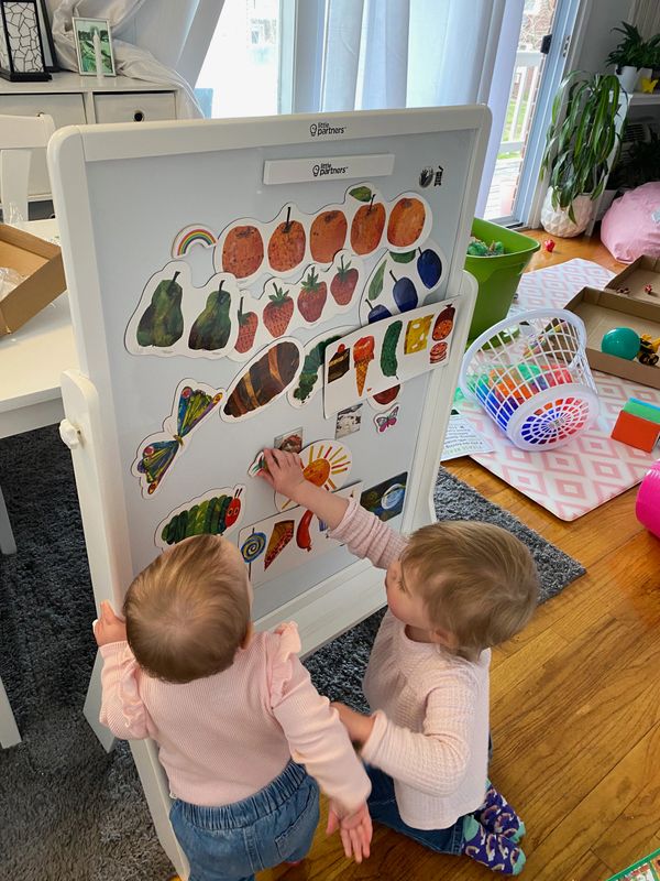 We dig our hands into dirt to plant seeds. We make just about every handprint project imaginable. We hunt for bugs and document our nature discoveries. We measure and mix ingredients, crack eggs, and bake healthy (and sometimes not-so-healthy!) treats. We observe holidays and share celebrations with friends and family. One of our favorite activities? Visiting the local library and playground. Outdoor play is always encouraged!